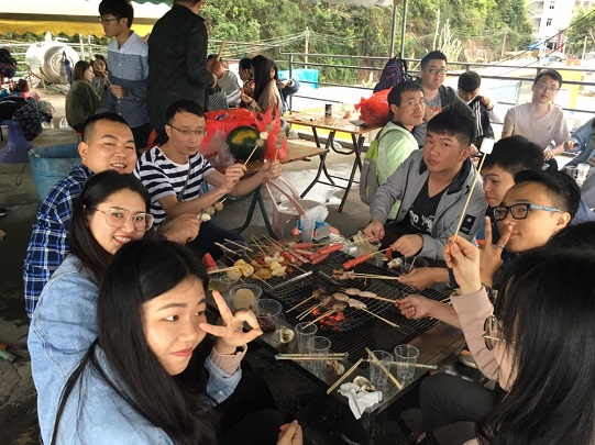 活動現場,大家分工行動,洗菜、切菜、燒肉、拍照,忙得不亦樂乎,都在為了午餐而各顯身手。有些同事的燒烤技術實在不敢恭維,把肉都烤成了“黑炭”;有的同事相當出色,看他們烤出來的肉、雞翅,不僅色澤誘人,而且香飄四溢!大家烤得認真,吃得津津有味,燒烤與飲料搭配,歌聲與歡笑點綴,顯露出長隆人之間單純的情誼;你一言、我一語,讓成員們認識了彼此,也熟悉了彼此。