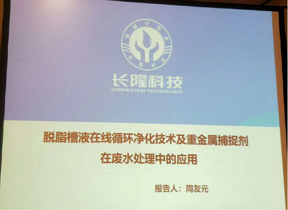 長(zhǎng)隆科技的匯報(bào)主題是“脫脂槽液在線循環(huán)凈化技術(shù)及重金屬捕捉劑在廢水處理中的應(yīng)用”。