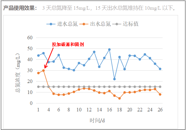 針對性的接種總氮強效菌種—邁葳?總氮激活菌101,改善菌群結構,快速實現總氮降解目的。總氮去除率高達99%。